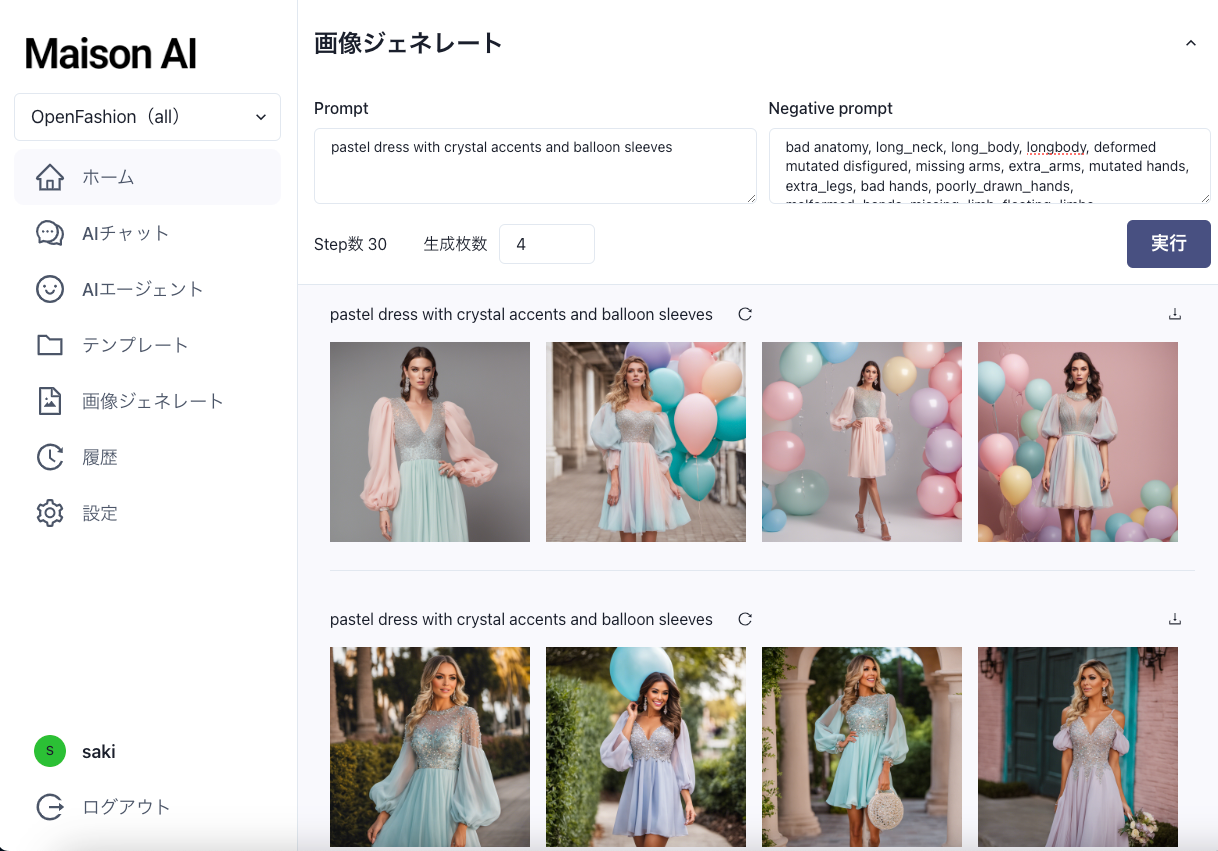 The service ``Maison AI'', whose beta version was launched in August of this year, is an AI tool for text and image generation specialized in the fashion industry. In October, "Image Generate", which generates images from text, was added as a new function, and a free trial is being offered until the end of January 2024, and many people are already using it.