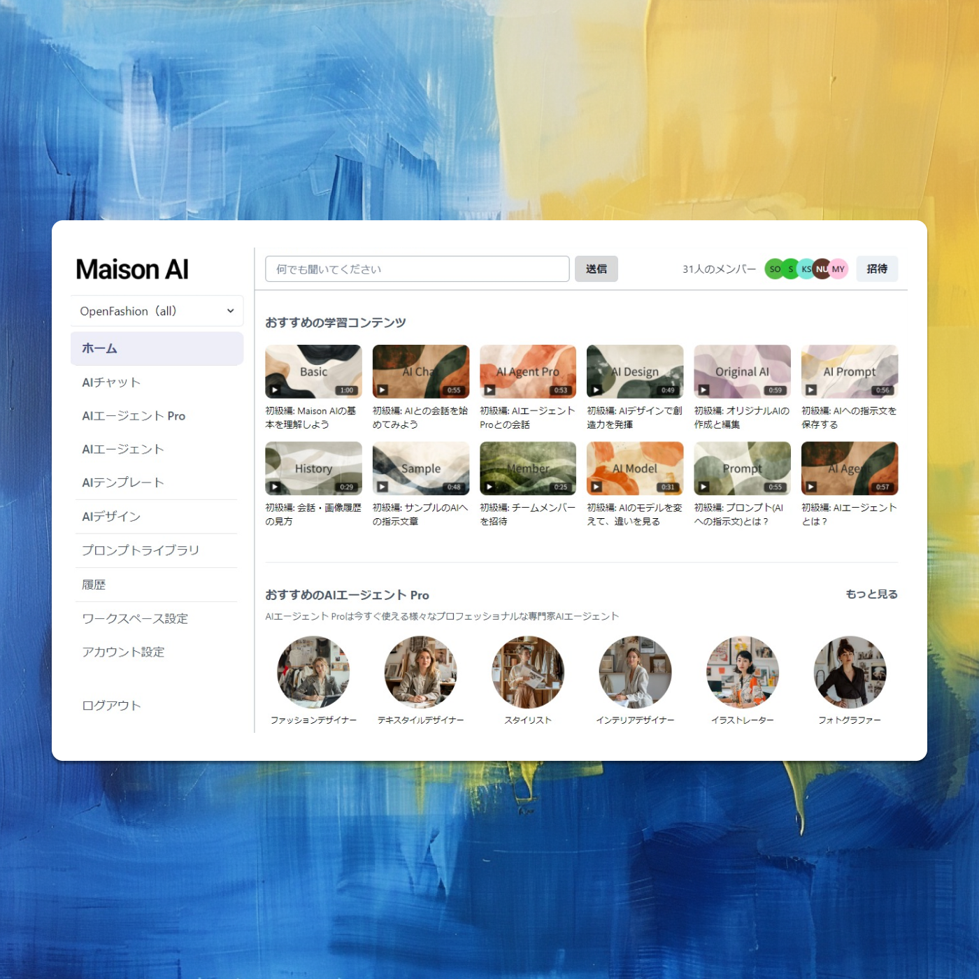 最先端の生成AIを業務で活用。Maison AI(メゾンAI)は生成AIを簡単に業務で活用出来るサービスです。文章生成AI、画像生成AIの両方に対応しており、様々な職種、規模に対応しています。