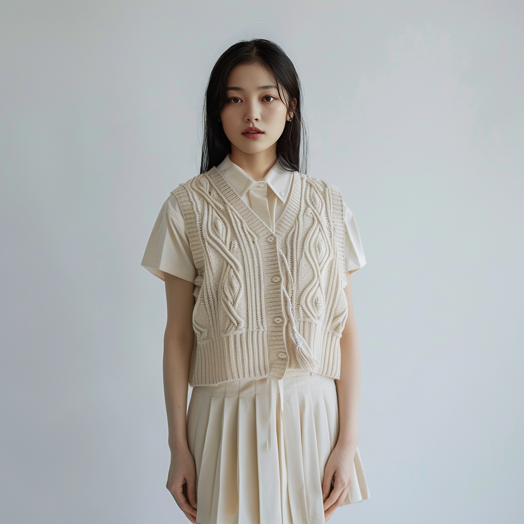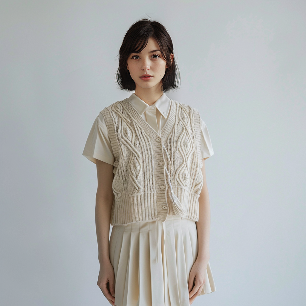 着用画像を送って頂くと、AIスタッフの顔画像に変更してお送りします。